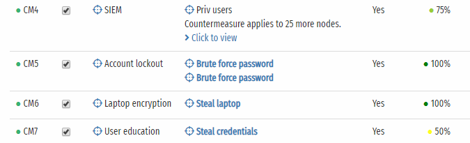 If confidence values are enabled, they will be shown in an additional column in the countermeasure table, both as a percentage and as a coloured circle.