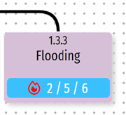 Hazard nodes are identifiable from the symbol on them. If they have assessment values, these will be in white text on a blue stripe, as shown below.