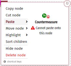 Since they have different risk affectors, they cannot be copied onto nodes that are not Hazards (either as a new countermeasure or a linked countermeasure). Similarly, countermeasures from standard risk nodes cannot be copied onto Hazard risks. In either case an error will be shown.