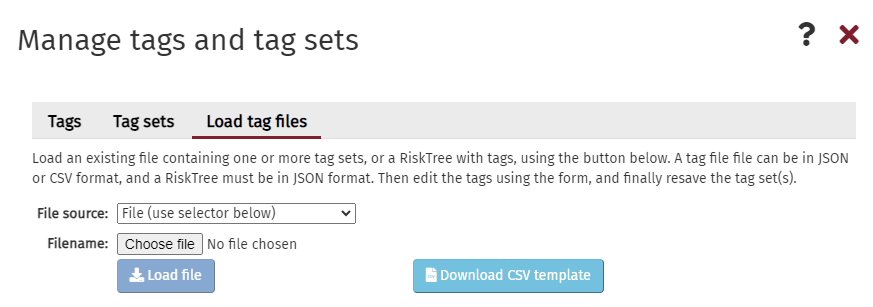 will open the tag manager function within RiskTree Designer. Click on the Load tag files tab.