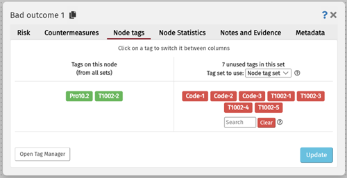 Tags are a powerful way of adding additional layers of data to the nodes and countermeasures in your RiskTree. For more general information about them, please read the Tags overview.