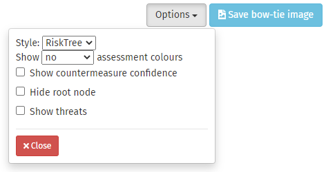 RiskTree goes beyond standard bow-tie diagrams, and lets you create bow-tie assessments. These use the information provided about the risks, countermeasures, consequences, and mitigations to assess and prioritize the outcomes identified as the bow-tie is built.