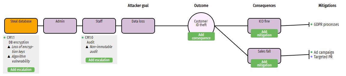 If you add an additional impact to a consequence, or change the impact type on a consequence, all of the mitigations linked to the consequence will change their impact effects to match the changes. By default, these will be set to have no effect, so you will need to edit each mitigation to set the correct impact effect values after changing the impacts on a consequence.