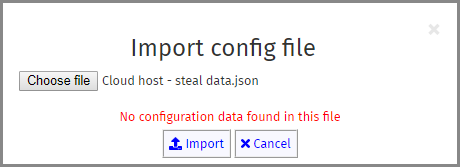 To edit an existing config file, click on the button. A box will open prompting you to choose a file for import. If the file does not contain valid configuration data, an error will be shown: