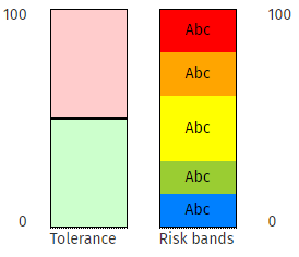 As you change the number and style of your risk bands, the display on the right will adjust to show how the bands are distributed across the risk scale. This shows the colours for the font and background, with the heights relative to the size of each risk band:
