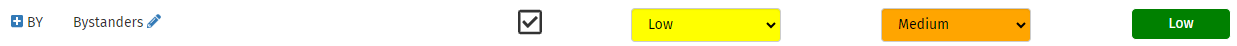 Use the drop-downs in the Capability and Motivation columns to choose the values for these two fields. When both are completed, an assessment of the threat level will appear in the last column. This is created using the threat matrix.