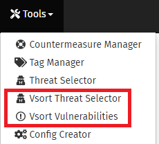 Open the Vsort Threat Selector from the Tools menu. This will start with a blank threat template. The template is populated by specifying the name of the threat, and answering five questions about it. The questions are: