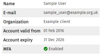 In order to complete MFA set-up, you will need to enter the six-digit code shown on your MFA app for RiskTree and press the button. You should then see that MFA is enabled for your account:
